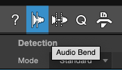 Na barra de ferramentas temos o Audio Bend. Menu dedicado aos parâmetros de