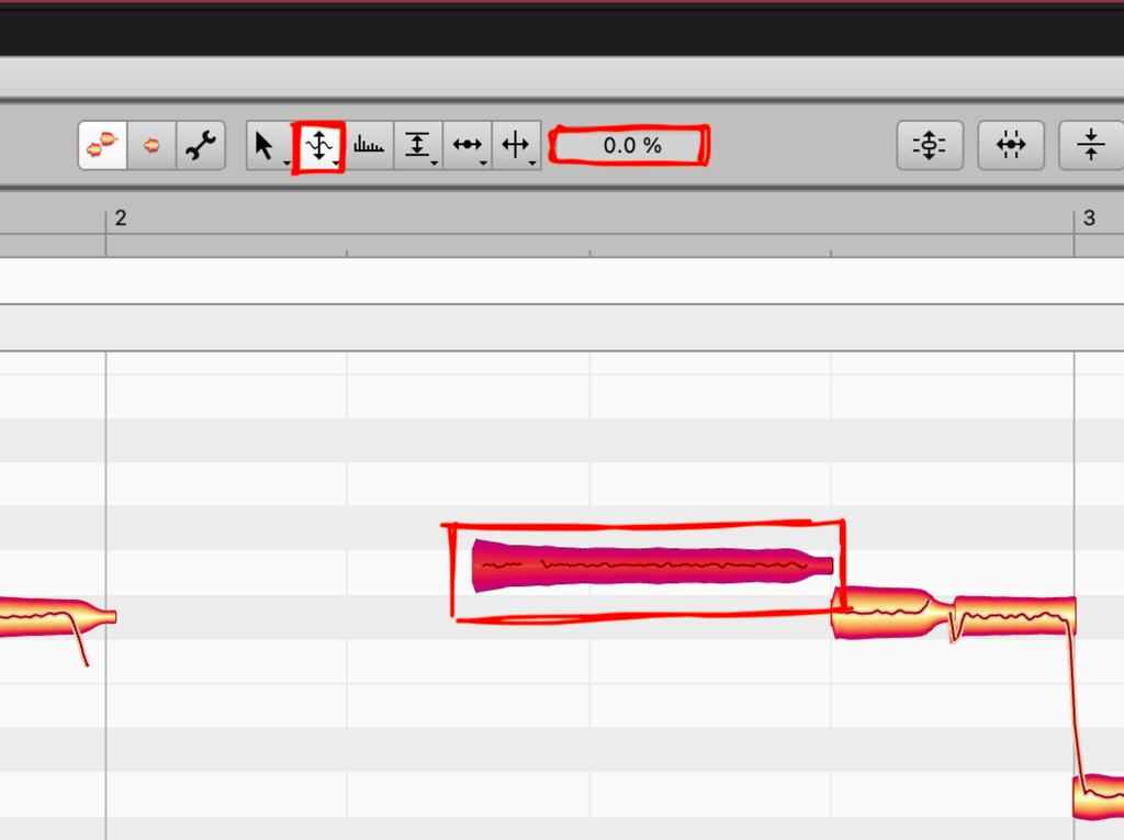 Note que o Melodyne corrige o segundo transiente para onde ele entende ser o mais pertinente!