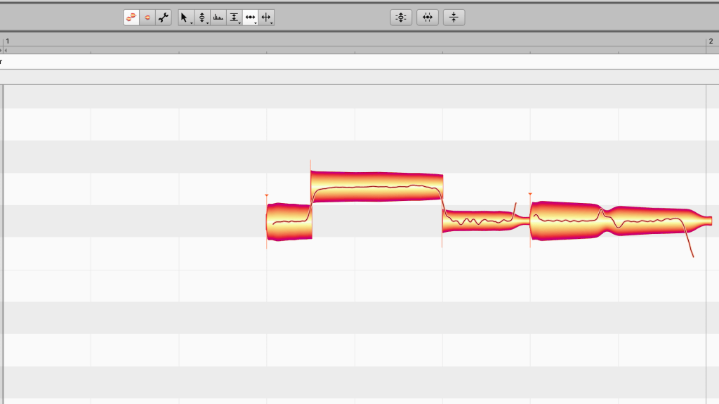Escolhida a melhor subdivisão que se adeque ao material de áudio que está sendo trabalhado, a correção é intuitiva. Apenas cliques duas vezes no blob que você deseja corrigir.